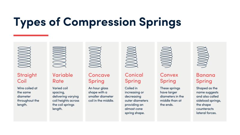 نوابض الضغط,الصلب الكربوني, الفولاذ المقاوم للصدأ, سلك البيانو, سبائك النيكل, سبائك النحاس, وما إلى ذلك وهلم جرا.